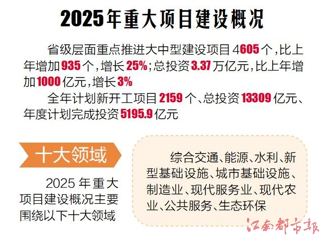 我省2025年省級(jí)層面重點(diǎn)推進(jìn)大中型建設(shè)項(xiàng)目4605個(gè)(均為投資億元以上項(xiàng)目),比上年增加935個(gè),增長(zhǎng)25%;總投資3.37萬(wàn)億元,比上年增加1000億元,增長(zhǎng)3%。全年計(jì)劃新開(kāi)工項(xiàng)目2159個(gè)、總投資13309億元、年度計(jì)劃完成投資5195.9億元。