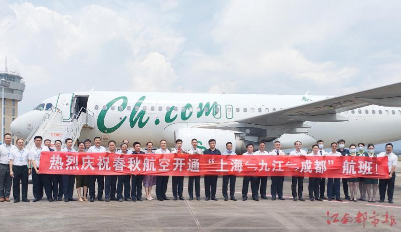 江南都市報訊 胡慧明、全媒體記者王平攝影報道:8月16日12時50分許,隨著春秋航空公司所屬的一架空客A320型客機降落在九江廬山機場,標(biāo)志著“上海?九江?成都(天府)”航線正式開通。至此,以九江為中心的三條線六個點的“米”字形航空網(wǎng)絡(luò)布局基本形成。