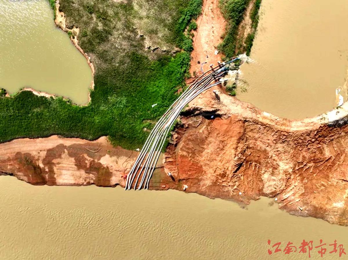 江南都市報(bào)訊 全媒體記者許南平攝影報(bào)道:受持續(xù)晴熱高溫天氣及鄱陽湖水位快速下降的影響,瀕臨鄱陽湖的都昌縣周溪鎮(zhèn)梟陽農(nóng)場5000畝農(nóng)田灌溉用水出現(xiàn)困難。面對日益嚴(yán)峻的旱情,梟陽農(nóng)場8臺潛水泵齊上陣,從鄱陽湖外湖取水,為稻田灌溉保苗。