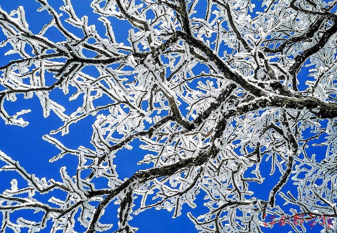 江南都市報訊 全媒體記者許南平、實習(xí)生易告文攝影報道:12月18日,隨著冷空氣強(qiáng)勢來襲,萍鄉(xiāng)武功山景區(qū)再次迎來了霧凇云海美景,一夜之間,山頂?shù)牟菽颈还狭司К摰谋宫F(xiàn)夢幻般的霧凇奇景。云霧彌漫,縈繞山間,霧凇與云海交織,整座山給人以靜謐美好之感,獨特的冬日美景吸引了眾多游客駐足打卡。霧凇,俗稱冰花、樹掛等,是低溫時空氣中水汽直接凝華,或過冷霧滴直接凍結(jié)在物體上的乳白色冰晶沉積物,是非常難得的自然奇觀。
