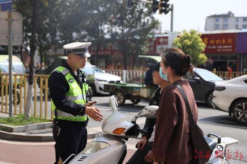 近期,萍鄉(xiāng)交警支隊直屬大隊對二輪車開展“滾動式”整治行動,重點整治二輪車非法加裝遮陽傘、未佩戴安全頭盔、超員超載等交通違法行為。在嚴格執(zhí)法形成強有力的震懾同時,交警執(zhí)法也有“溫度”,如允許有急事要辦的違法者先行離開,辦事結(jié)束后再返回接受教育、處理。