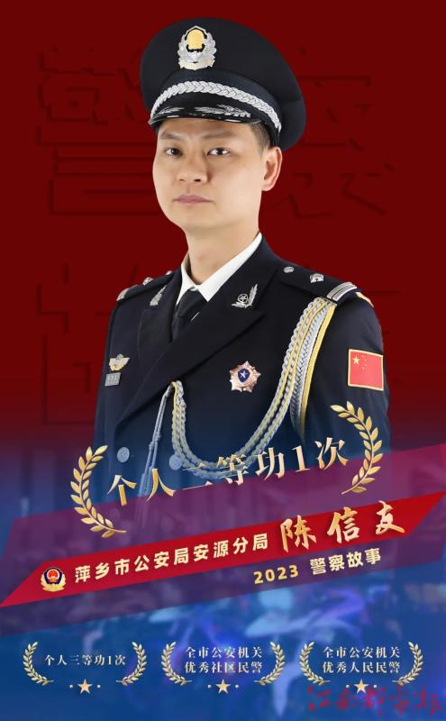 為進(jìn)一步加強(qiáng)全市公安機(jī)關(guān)典型宣傳工作,持續(xù)深化公安英模教育,切實(shí)營(yíng)造學(xué)習(xí)先進(jìn)、爭(zhēng)當(dāng)先進(jìn)的濃厚氛圍,萍鄉(xiāng)公安開設(shè)【學(xué)先進(jìn) 鑄警魂】專欄,擇優(yōu)對(duì)全市各級(jí)公安陳信友,男,漢族,江西萍鄉(xiāng)人,1985年11月,中共黨員,本科學(xué)歷,2011年9月參加公安工作,現(xiàn)任萍鄉(xiāng)市公安局安源公安分局后埠派出所副所長(zhǎng)兼二南塘責(zé)任區(qū)社區(qū)民警。從警以來(lái),陳信友心系群眾,腳踏實(shí)地為群眾辦好事、辦實(shí)事,曾先后榮獲市局、分局優(yōu)秀人民警察、優(yōu)秀社區(qū)民警、群眾最滿意社區(qū)民警,安源區(qū)五星共產(chǎn)黨員、優(yōu)秀公務(wù)員,萍鄉(xiāng)市最美聲音榜樣等榮譽(yù),榮立個(gè)人三等功1次,獲市局嘉獎(jiǎng)4次。