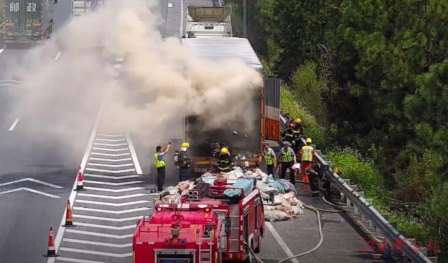 快遞貨車(chē)高速公路自燃,多部門(mén)聯(lián)合救援