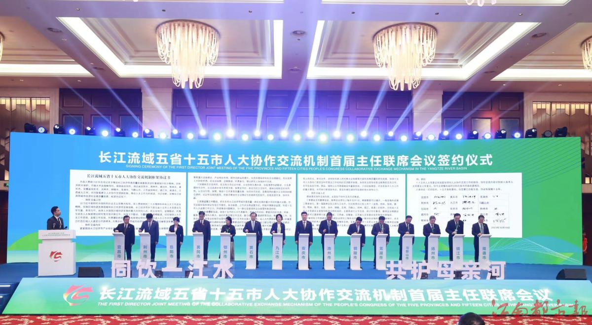 江南都市報(bào)訊 胡慧明、全媒體記者王平攝影報(bào)道:19日,長江流域的湖南省岳陽市,湖北省宜昌市、荊州市、黃岡市、鄂州市、黃石市,安徽省安慶市、池州市、銅陵市、蕪湖市、馬鞍山市,江蘇省揚(yáng)州市、鎮(zhèn)江市、南通市及江西省九江市的人大常委會(huì)派出代表,出席了在九江舉行的“長江流域五省十五市人大協(xié)作交流機(jī)制首屆主任聯(lián)席會(huì)議”,深入貫徹習(xí)近平總書記關(guān)于推動(dòng)長江經(jīng)濟(jì)帶高質(zhì)量發(fā)展重要講話和重要指示批示精神,堅(jiān)持共抓大保護(hù)、不搞大開發(fā)戰(zhàn)略導(dǎo)向,共同探索建立人大協(xié)作交流新機(jī)制,助推長江經(jīng)濟(jì)帶城市經(jīng)濟(jì)社會(huì)高質(zhì)量發(fā)展。