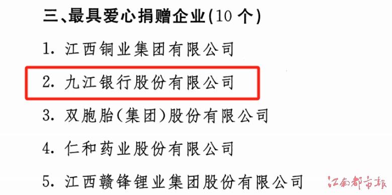 九江銀行榮獲第三屆贛鄱慈善獎彰顯企業(yè)社會責任