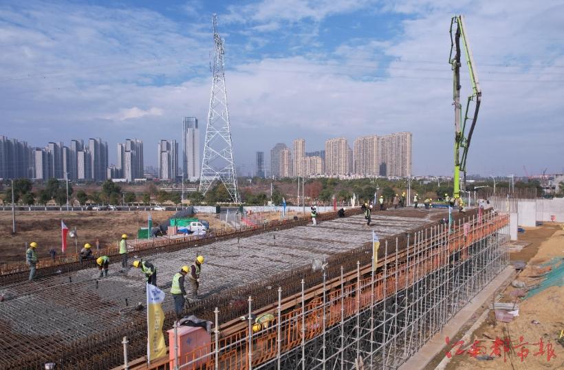 江南都市報訊 全媒體記者章娜、實習生姜夢攝影報道:1月14日20時許,經(jīng)過13個小時的連續(xù)奮戰(zhàn),由昌九城際鐵路公司投資建設(shè),中交二航局承建的昌九高鐵隆興大橋南引橋首聯(lián)支架現(xiàn)澆3x24m連續(xù)剛構(gòu)順利澆筑完成,標志著項目上部結(jié)構(gòu)施工進入新階段。
