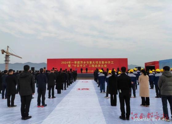 江南都市報訊 全媒體記者陳建新攝影報道:跑好“第一棒”,沖刺“開門紅”。2月18日,春節(jié)假期后第一個工作日,在位于蘆溪縣的江西高強電力科技有限公司年產(chǎn)3.6萬噸玻璃絕緣子數(shù)字化生產(chǎn)項目現(xiàn)場,2024年一季度萍鄉(xiāng)市重大項目集中開工暨“十百千萬”工程動員大會如期召開。