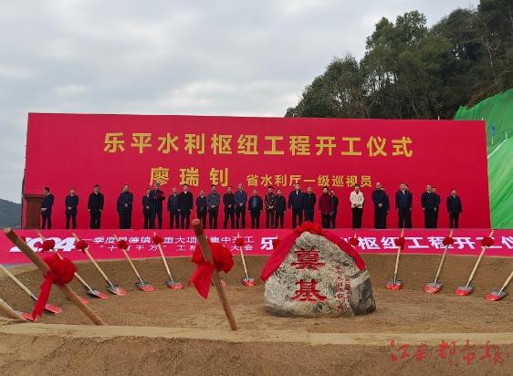 江南都市報(bào)訊 全媒體記者余文斌攝影報(bào)道:2月18日上午,在樂(lè)平市鸕鶿鄉(xiāng)對(duì)家村,2024年一季度景德鎮(zhèn)市重大項(xiàng)目集中開(kāi)工暨“十百千萬(wàn)”工程動(dòng)員大會(huì)順利召開(kāi),40個(gè)項(xiàng)目于當(dāng)日集中開(kāi)工,總投資額達(dá)到233億元。會(huì)上,作為該市的重大項(xiàng)目之一,項(xiàng)目總投資額42.59億元的樂(lè)平水利樞紐工程也舉行了開(kāi)工儀式,吹響了該市項(xiàng)目建設(shè)“沖鋒號(hào)”。