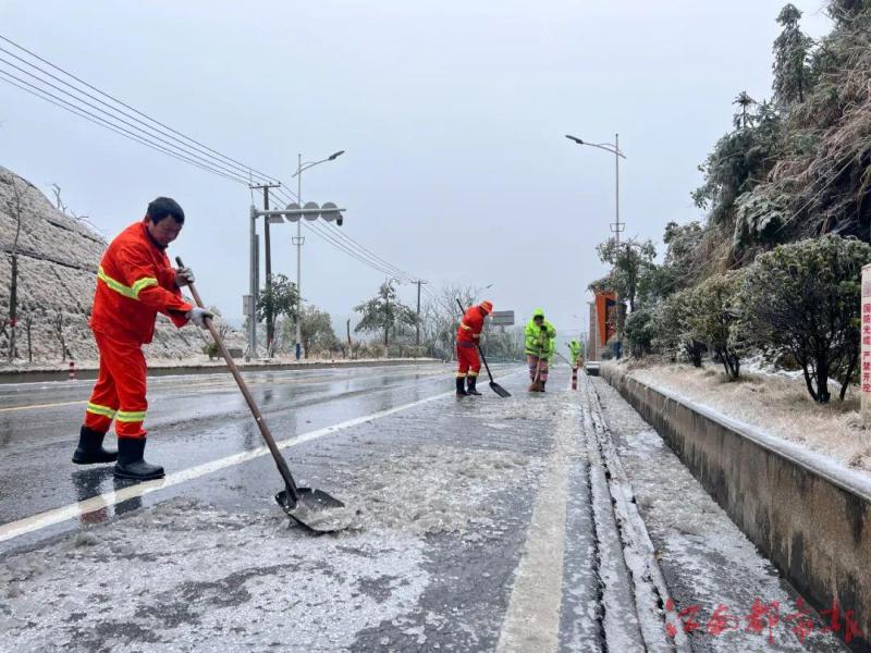 江南都市報(bào)訊 全媒體記者陳建新攝影報(bào)道:2月23日上午,萍鄉(xiāng)市氣象部門發(fā)布道路結(jié)冰黃色預(yù)警信號(hào),22~24日,該市維持低溫陰雨(凍雨、雨夾雪)天氣。該市大部分地區(qū)有凍雨,易發(fā)生電線積冰,高寒山區(qū)有小雪,山區(qū)道路路面溫度低于0℃,易發(fā)生道路結(jié)冰。