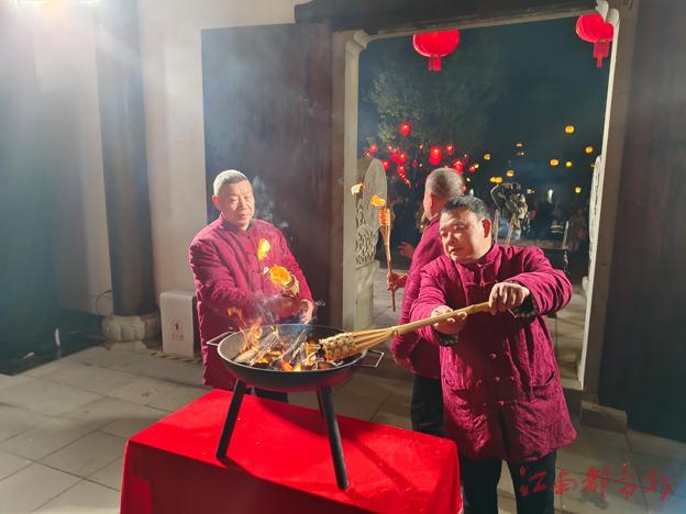 23日晚7時許,火紅的燈籠懸掛在陶陽里的每一處角落,人們在佑陶靈祠舉起了星星火炬,“開禁迎神”將陶陽廟會推向了高潮,窯火跳躍在瓷業(yè)傳承者之間,讓游覽的游客們直觀地感受到景德鎮(zhèn)工匠們的堅(jiān)持與傳承力量。