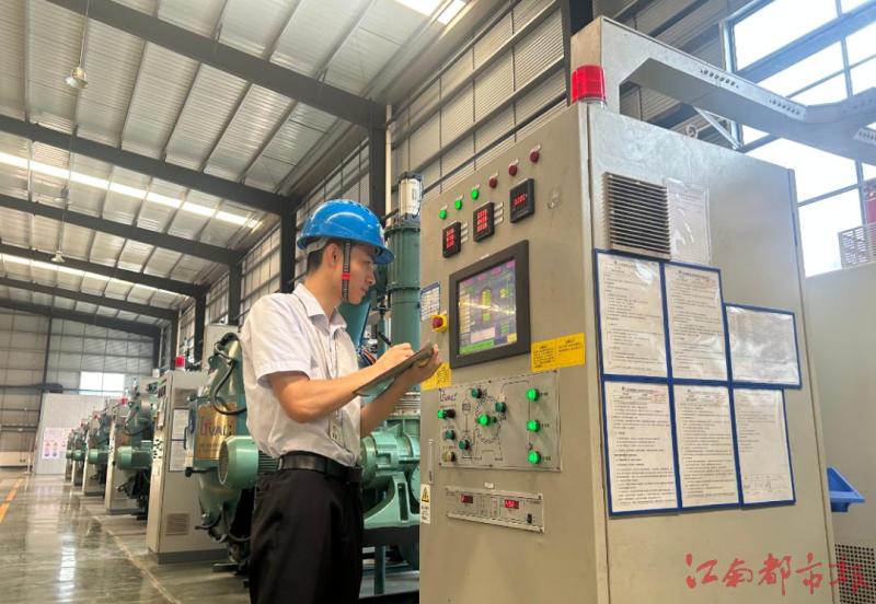 江西粵磁稀土新材料科技有限公司的工作人員正在檢測(cè)設(shè)備并記錄數(shù)據(jù)。劉蘇蘇/攝