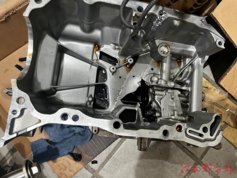 廣汽豐田C-HR在高速上熄火,車主周女士被嚇得不輕,汽車被拖到4S店拆卸維修,發(fā)動機缸體破裂了很大一塊。
