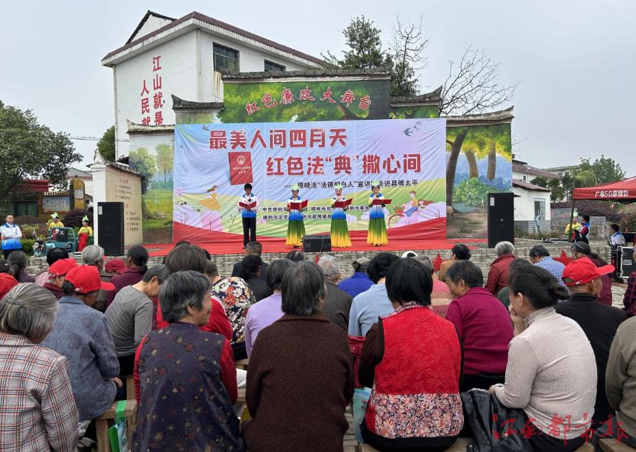 江南都市報(bào)訊 劉賦、全媒體記者盧勇攝影報(bào)道:人間四月芳菲盛,法治春風(fēng)暖人心。4月11日,樟樹市昌傅鎮(zhèn)太平村傳出法律主題的歌曲聲。據(jù)悉,連日來該村開展“最美人間四月天 紅色法典撒心間”法治宣傳活動(dòng),以寓教于樂的方式提升群眾法治意識(shí)。