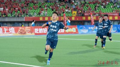 本報訊 全媒體記者余文斌攝影報道:8月17日晚,景德鎮(zhèn)隊對陣南昌隊的比賽中,景德鎮(zhèn)隊于上半場第8分鐘就率先攻破了南昌隊的大門,進球的是在場上司職左邊后衛(wèi)的4號球員李一鳴。賽后,李一鳴接受本報記者采訪時表示,在新的主場拿到一分非常不容易!景德鎮(zhèn)隊從一比零領先,到一比一追平,再到二比一落后,最后二比二扳平,感覺整個球隊的心情像坐了一趟過山車。“當然,如果沒有每個隊員的拼搏,我們也拿不到這寶貴的一分。最后也要感謝所有支持我們的球迷!”
