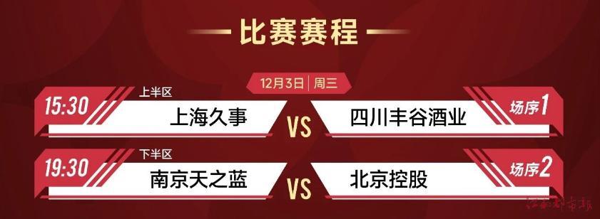 上海久事與四川豐谷酒業(yè)的比賽將于12月3日下午15:30打響,這場比賽是B組上半?yún)^(qū)循環(huán)賽的開局之戰(zhàn)。