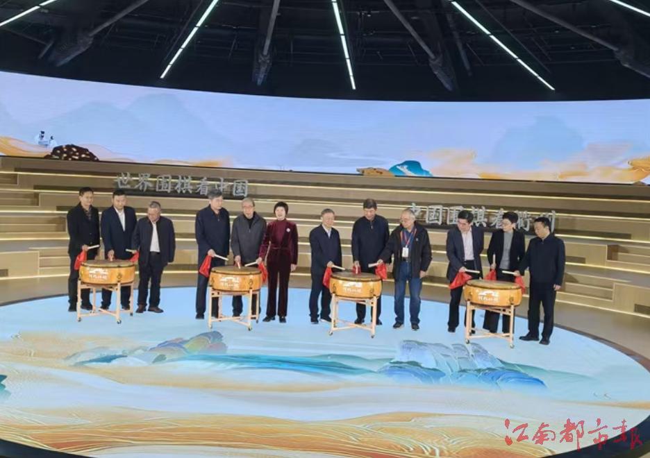 中國記協(xié)書記處書記殷陸君,中國圍棋協(xié)會(huì)名譽(yù)主席華以剛、中國圍棋協(xié)會(huì)副主席孫光明等以擂鼓方式宣布比賽開始。